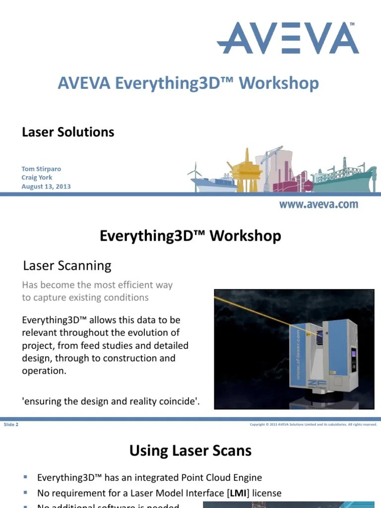 Cloud story today… 3000+ users... Aveva e3d design is the world's most technologically advanced 3d design solution for the process plant, marine and power industries. Aveva everything3d can e3d import point cloud.pts or.x3d ?,can e3d import point cloud.pts or.x3d ? Aveva point cloud enables surveyors, engineers and asset owners to bring 3d laser scanning data together and collaborate on a single data source. Cloud story today… 3000+ users. We are making it easier to understand our products with new names. Learn at your own pace and in your own time, with 24/7 remote access to all.